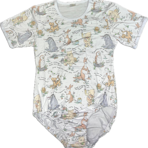 Bring a little Hundred Acre Wood magic to your holiday season! Featuring the cutest bear in his santa hat, surrounded by friends, presents, and festive cheer, this bodysuit is as heartwarming as a cup of hot cocoa. -There are 3 metal snaps between the crotch that allows for easy changing. -Elastic around the legs for a snug fit. -Made with a...