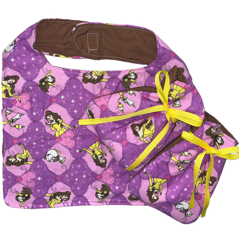 Handmade Bib: Double sided Width 11.5” Length 19” Mittens: Padded Length 11” Width 5” Wrist Width 3” Adjustable strap on wrist