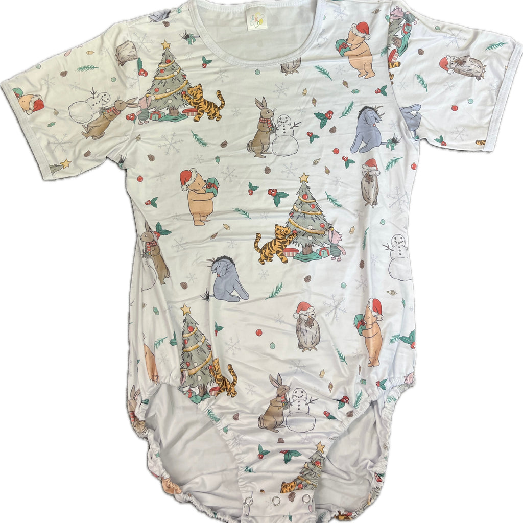 Bring a little Hundred Acre Wood magic to your holiday season! Featuring the cutest bearin his santa hat, surrounded by friends, presents, and festive cheer, this bodysuit is as heartwarming as a cup of hot cocoa.