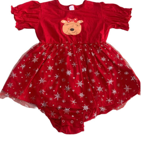 Make spirits bright (and irresistibly cute) in this romper dress! Whether you're heading to a holiday party or staying in with hot cocoa and fuzzy socks, this look says, “Yes, I sleigh—and I hop.” There are 3 snaps between at the crotch that allows for easy changing. Stretchy & cozy fit. Material: 90% polyester 10 % spandex Care Instructions: Machine washable in...
