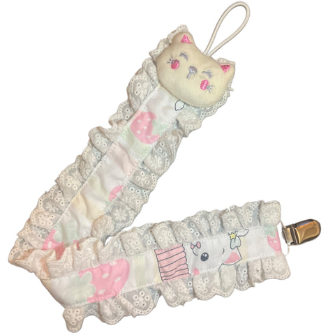 No two are exactly the same! Handmade with loveThe Paci Holder Features: Fashionable patterns and adorable charactersStrong clasp that is gentle on cloths but wont pull off