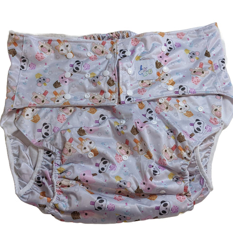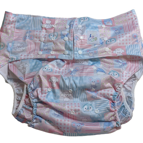 •Pockets in front and back for inserts. Measurements:•Side Rise 6" •Crotch is 8" wide includes the gussets it's 12.5"*Form fitting and comfortable, lots of snaps to adjust sizing to fit you*•Inserts are a 4 layer microfiber terry. Thick and absorbent.•Inserts are 19" long and 8" wide. Material:•Outer layer :Thermoplastic Polyurethane (TPU) laminated Fabric, which is highly water resistant, breathable and...