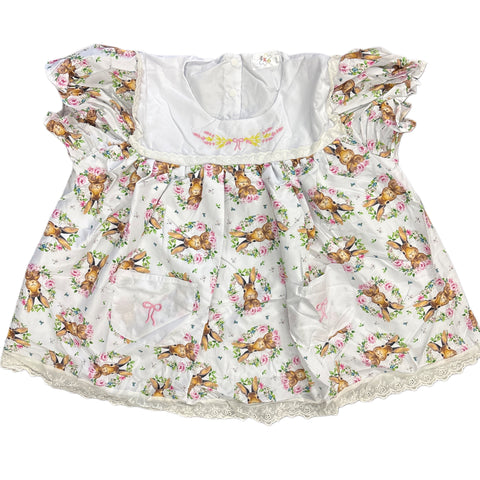 A seersucker dress for the littlest dreamers, woven with whispers of nostalgia and softness. Its tiny buttons are like hidden treasures waiting to be discovered, and the gentle ruffles dance with every playful step. Perfectly pint-sized, it's a hug from summertime itself, wrapped in innocence and sweet memories. •Back snaps closure •Made of cotton •Care Instructions: Machine washable. Lay flat...