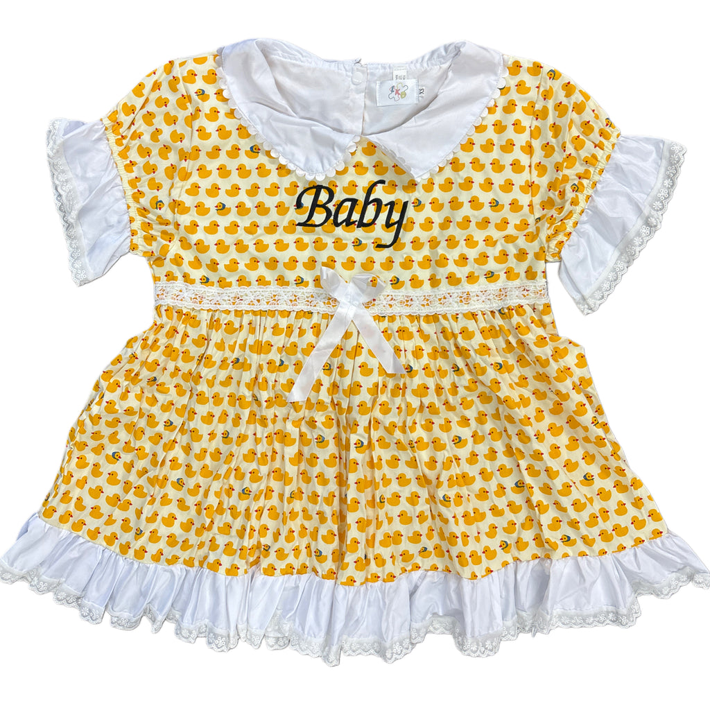 A seersucker dress for the littlest dreamers, woven with whispers of nostalgia and softness. Its tiny buttons are like hidden treasures waiting to be discovered, and the gentle ruffles dance with every playful step. Perfectly pint-sized, it's a hug from summertime itself, wrapped in innocence and sweet memories.