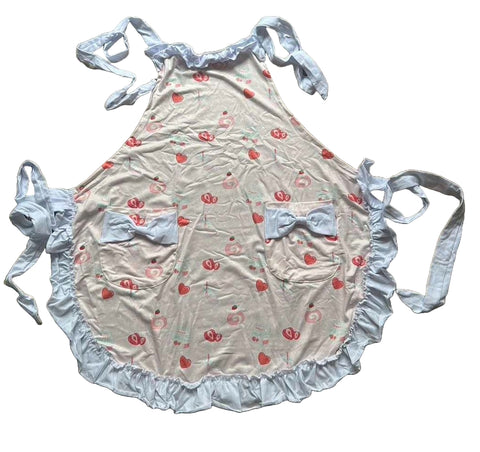 the bow design on the pocket and the lace design around the apron make it look more lovely and elegant made of quality polyester soft and lightweight to wear The set may be wrinkly from packing and shipping. Machine washable The perfect apron come with 2 pockets for convenient to store pacifiers, snacks for your little one Print designed by oddfoxshop...