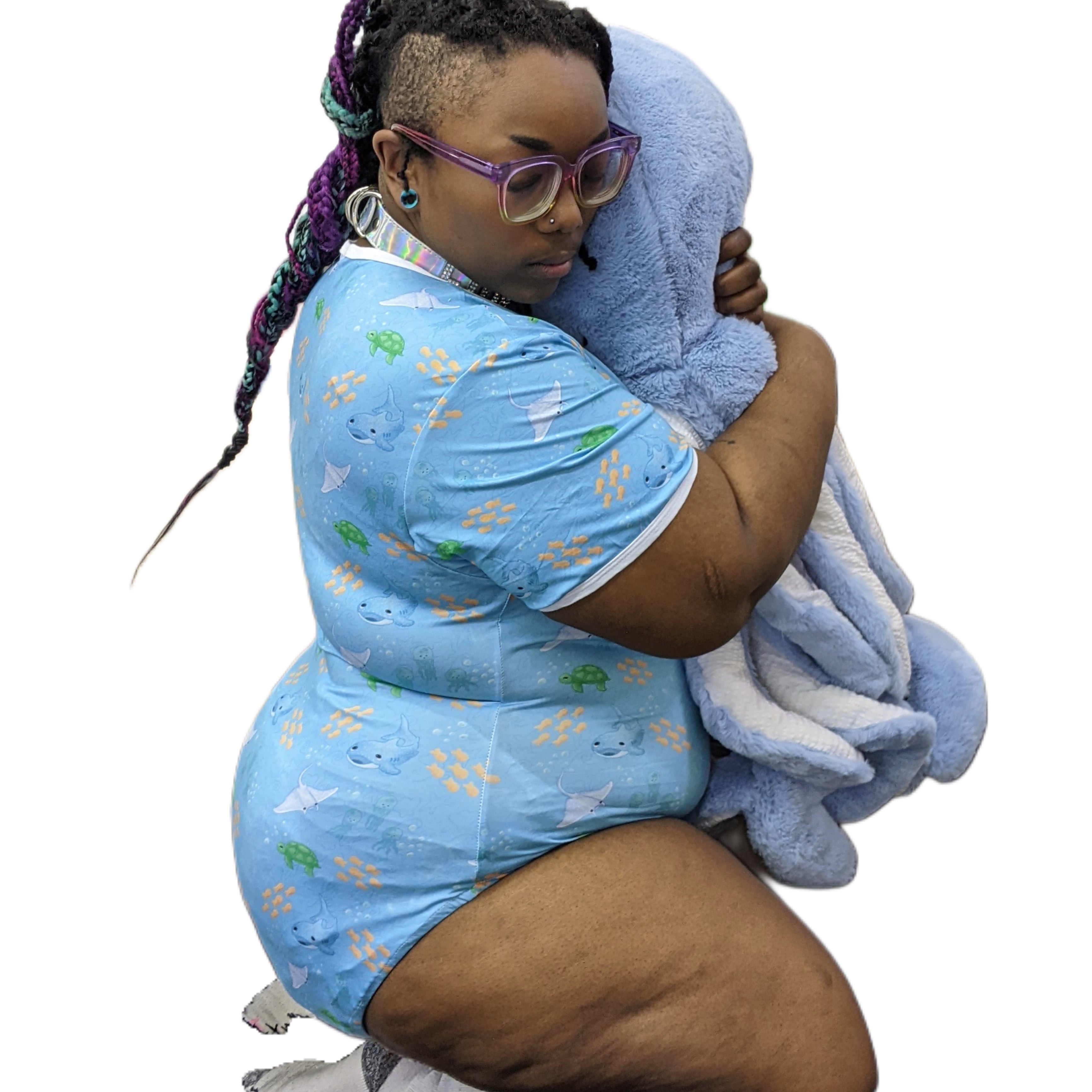 Make a splash at bedtime with the bodysuit! This dreamy bodysuit wraps your little one in a sea of softness, featuring playful underwater friends like smiling whales, gentle turtles, and shimmering gold fish drifting through a cool ocean blue background.