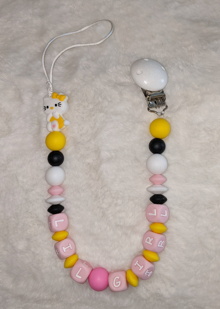 Lil Girl Kitty Silicone Teether Chewing Toy Pacifier Clip