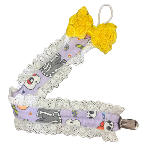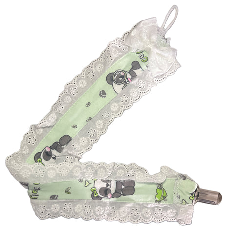 No two are exactly the same! The Paci Holder Features: Fashionable patterns and adorable charactersStrong clasp that is gentle on cloths but wont pull off