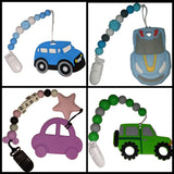 -Simply and safely attaches to baby's clothes -BPA, phthalate, cadmium, lead, and metal-free -Made of non-toxic silicone -Dishwasher safe -8"-10" in length