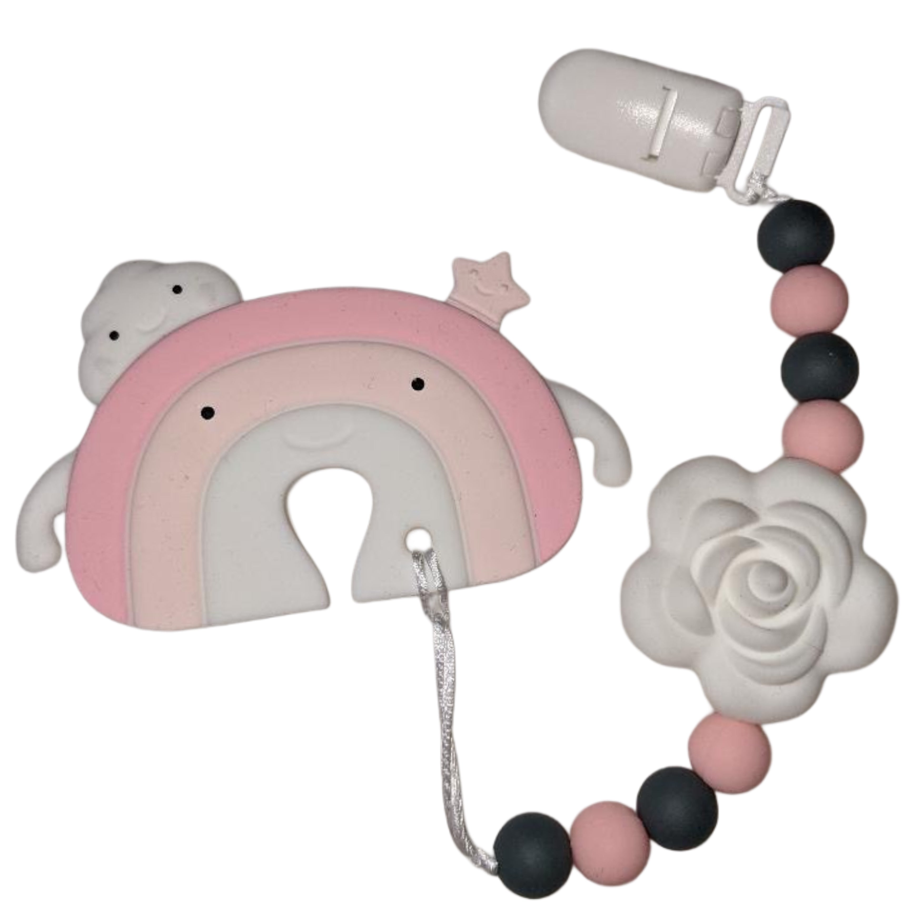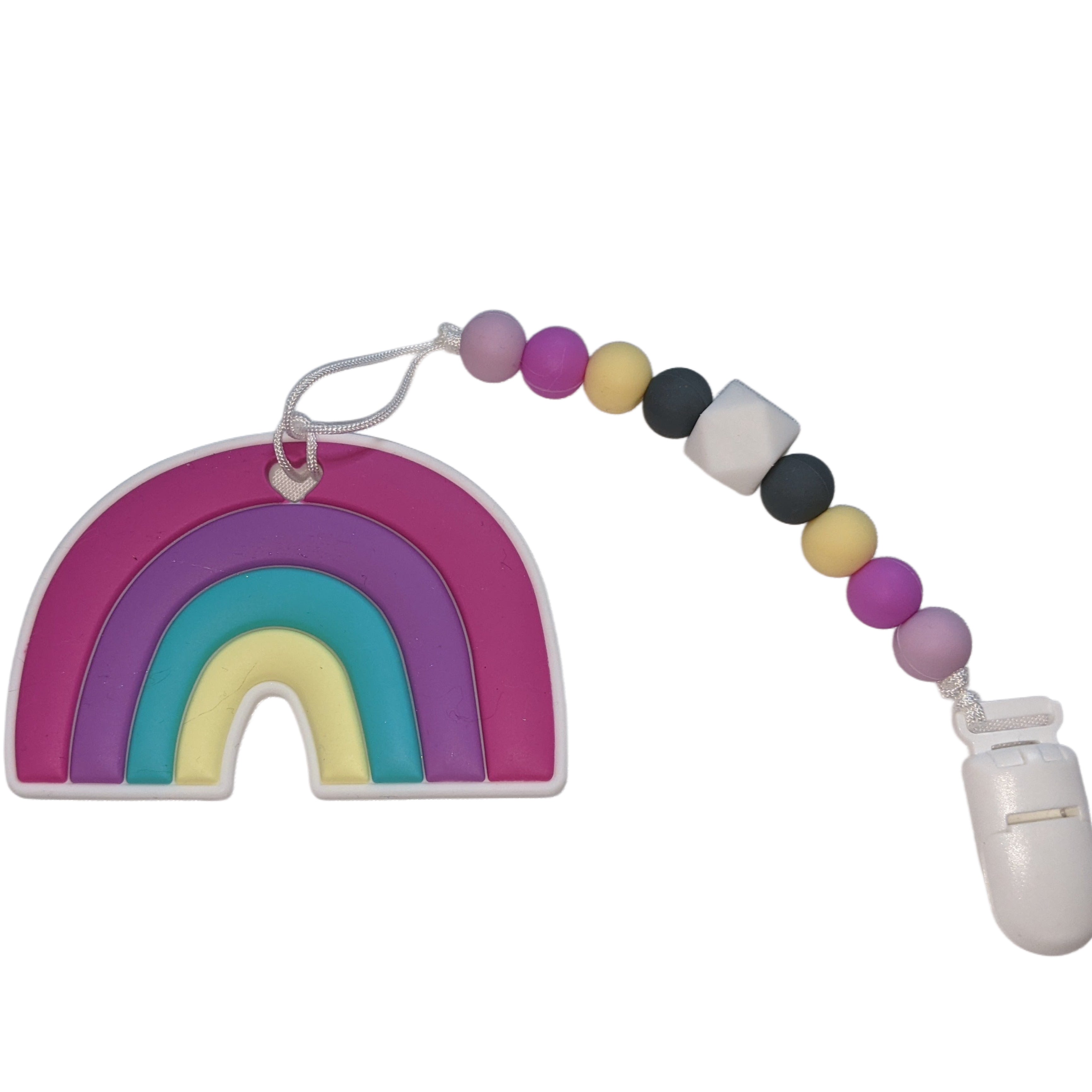 Rainbow Silicone Teether Chewing Toy Pacifier Clip