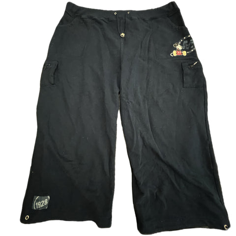 *Used condition, missing a drawstring on the bottom left* *The color is dark blue, although the lighting of the photo makes it look black* Features a drawstring and two pockets on each side. Original Price: $20 Materials: 100% Cotton Measurements: Length: 33” - Waist: 40” - Hips: 53” Care Instructions: Turn inside out, machine wash warm on a gentle cycle....
