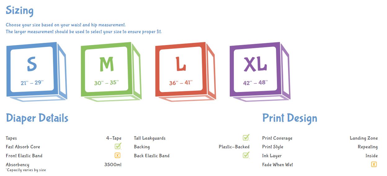 Truthfully, we designed PreSchool Plastic for AB/DL’s that want a little bit of crinkle while out on the town. Rumor has it that these diapers make operating toy planes, counting shapes, sleeping under leaping sheep, and racing through traffic downtown easier. With 4 different designs to choose from in every pack, you’ll be able to show off a unique and cute pattern every day!