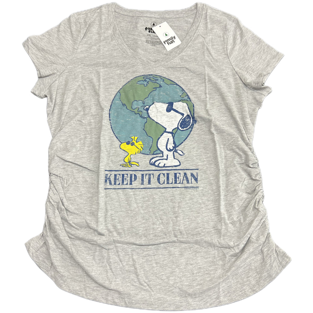 Features stretchy fabric around the waist. This shirt is a maternity size 2X.